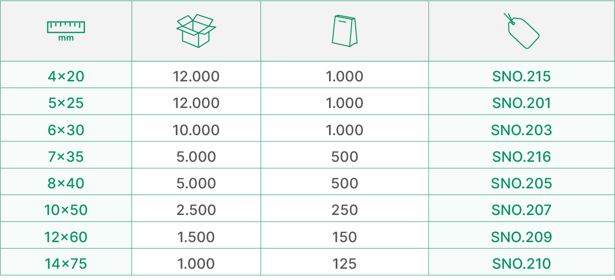 SN universal series technical specifications – With hexagonal head screw + metal washer