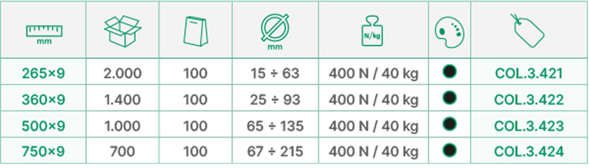 Le collier à une cage Coll en technopolymère est constitué d’un ruban à denture extérieure avec des bords arrondis et d’une seule cage horizontale. Le matériau confère au produit plus de flexibilité, et sa structure permet un encombrement réduit de la cage, ainsi qu’une meilleure adhérence à la surface d’application. Également adapté aux applications extérieures.