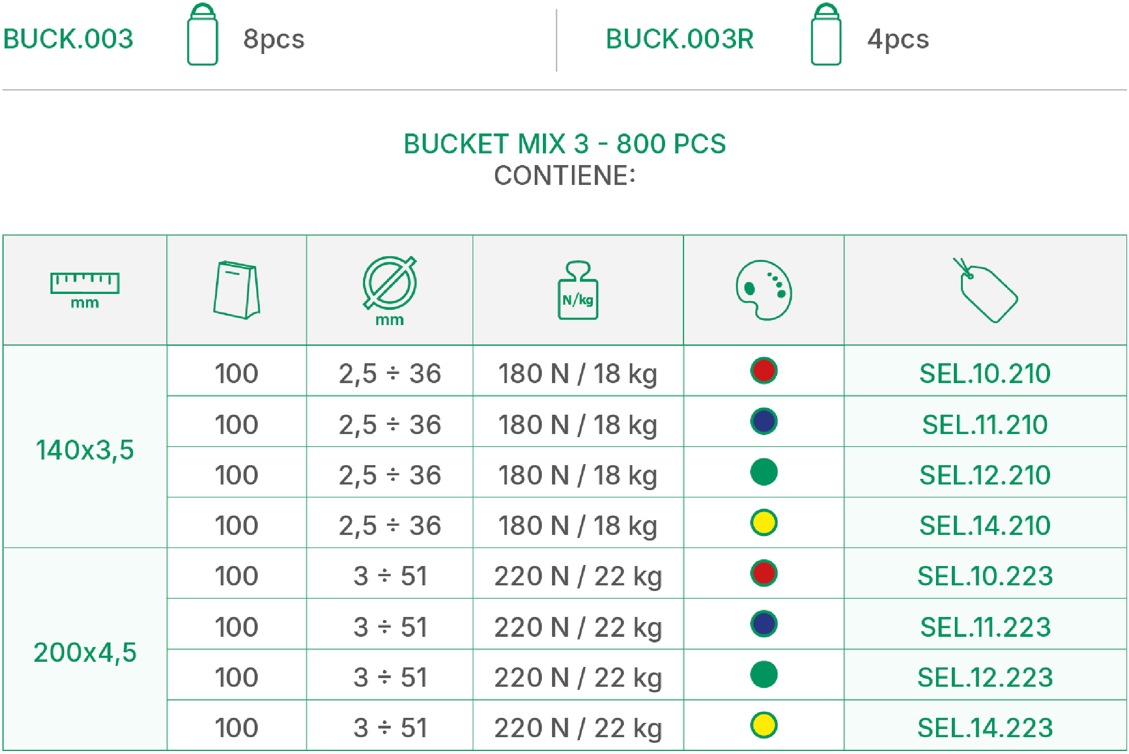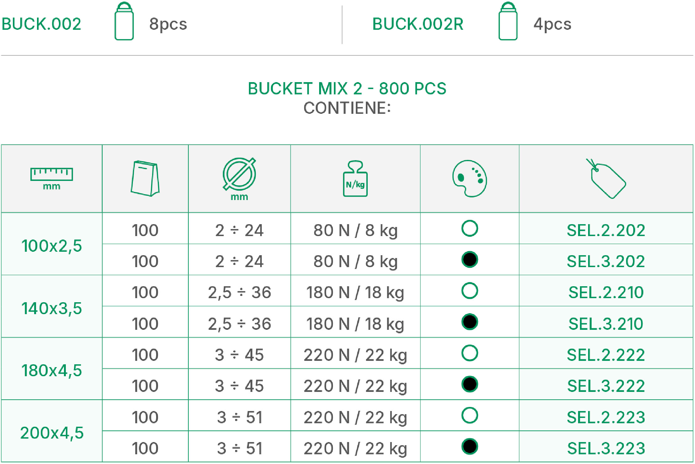 Tabella tecnica Bucket Mix 2 – 800 PCS